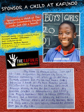 For just £25 per month you can make an incredible difference to the children who call The Kafunjo Community Project home. At the present time due to COVID-19 restrictions the school is not operating as normal with just the primary 4 through to 7 permitted to attend classes. The Kafunjo Orphanage still cares for 100 children full time who have no where else to go. Below is a selection of children who were attending classes at the present time. If you would like to sponsor one of our children please get in touch and we will connect you with a child who is presently under our care.